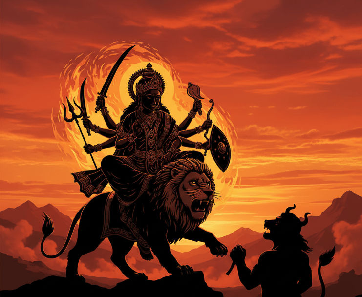 The lesson? Your battles may feel overwhelming, but within you lies an energy that is greater than any obstacle. When you stand firm in courage and clarity, even the Mahishasuras of life can be defeated.